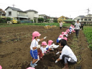 2025.10.07 園日記 10月7日(火)さつまいもほり 年中組 幼稚園バスに乗って、大澤農園にさつまいもほりに行きました。 みんな、長靴を履いて、軍手をもって頑張っていっぱい採りました。 今日の夕飯は、おいもの天ぷら? サラダ? スイートポテト? 何かな?