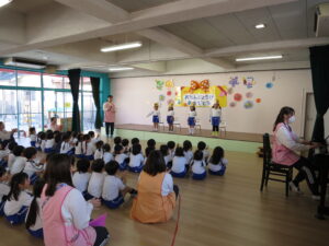 2025.10.30 園日記 10月30日(木)お誕生会(10月生まれのお友達) 4人のお友達が並びました。 みんなから歌のプレゼントと園長先生からはカードとプレゼントをもらいました。 みんな、おめでとう!!!