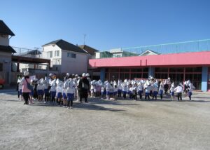 抜き打ちで防災訓練を行いました。先生達も知りませんでした。