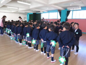2026.03.04 園日記 3月4日(水)お別れ会 年長さんがもうすぐ卒園してしまうので、お別れ会を行いました。 3学年でゲームをしたり、歌をプレゼントしたり、手作りのプレゼントも渡せて楽しい思い出づくりができましたね。