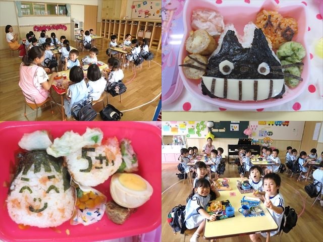 ●お弁当 お弁当の準備ができたら、みんなで歌ってごあいさつをして、いただきます。 今日のおかずはなにかな?